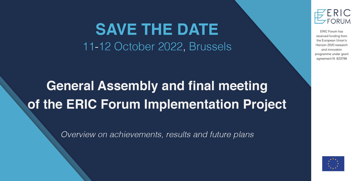 The ERIC Forum General Assembly and final meeting of the ERIC Forum Implementation Project will be held in Brussels, Belgium, on 11 and 12 October 2022.