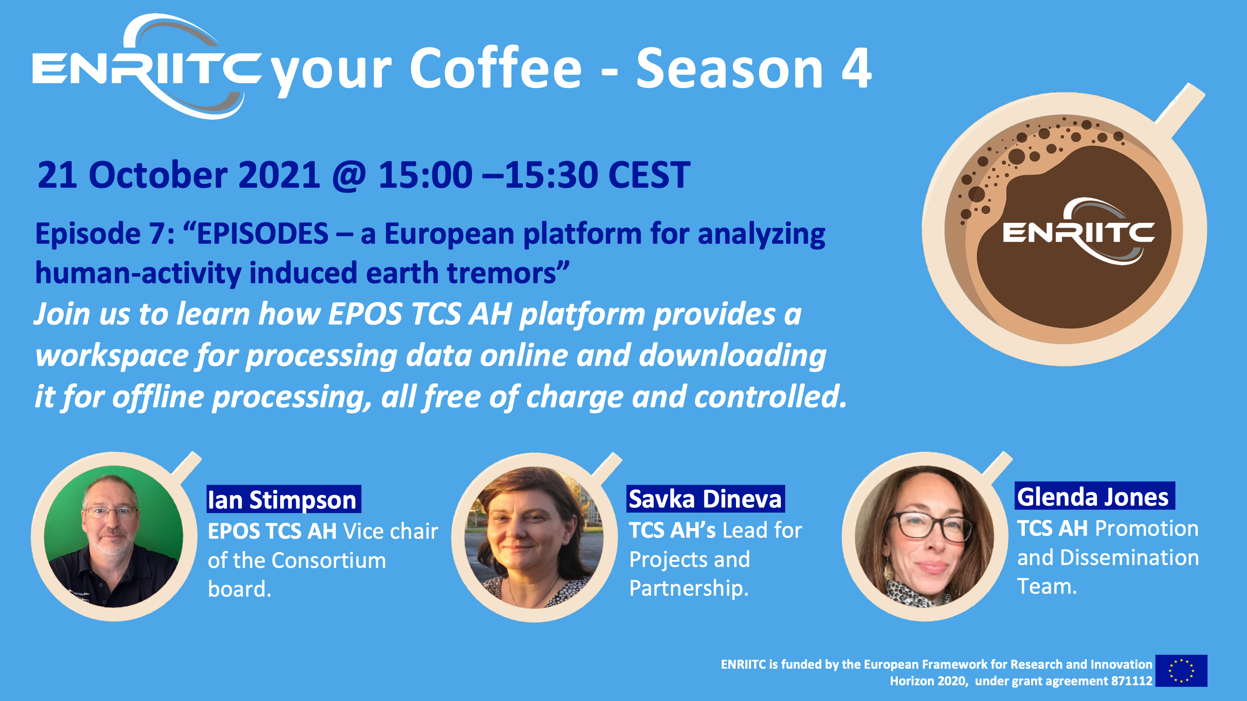 The TCS AH Team will host a session of #ENRIITCyourCoffee entitled: EPISODES - a European platform for analysing human-activity induced earth tremors.