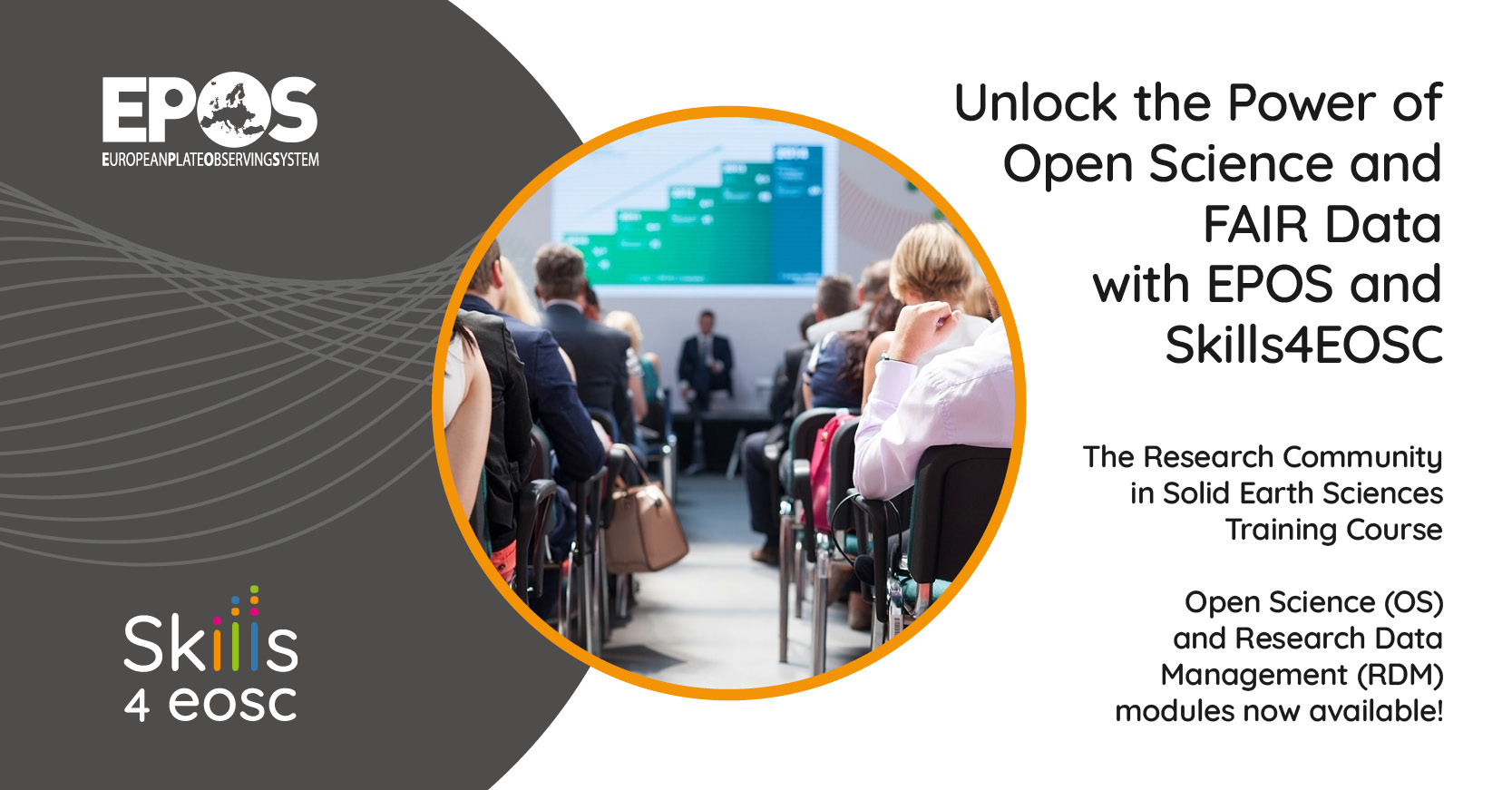 EPOS is proud to announce the opening of the brand-new training course on Open Science and Research Data Management (RDM) in Solid Earth Sciences, produced in the framework of the Skills4EOSC project.